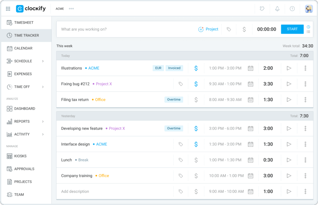 Time tracking software used by millions. Clockify is a time tracker and timesheet app that lets you track work hours across projects. Unlimited users, free forever.